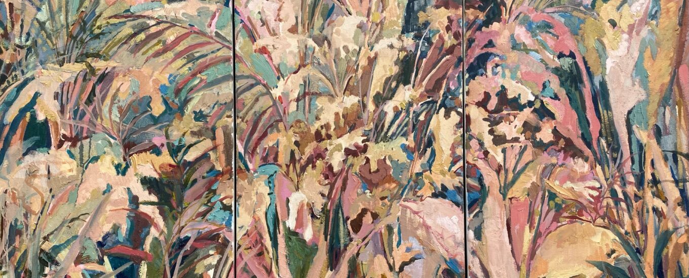 I like to bring in other elements of research, art history or humour too, Candy Stripers was in part named for the bubblegum pink of the palette but also a reference to the volunteers who help in hospitals in the USA. The art critic Clement Greenberg disparagingly described work by the female abstract expressionists as just ‘candy’. Joan Mitchell, one of those female abstract expressionists made many of her works in multiple parts which was one of the influences for my own works made in diptych or triptych form.