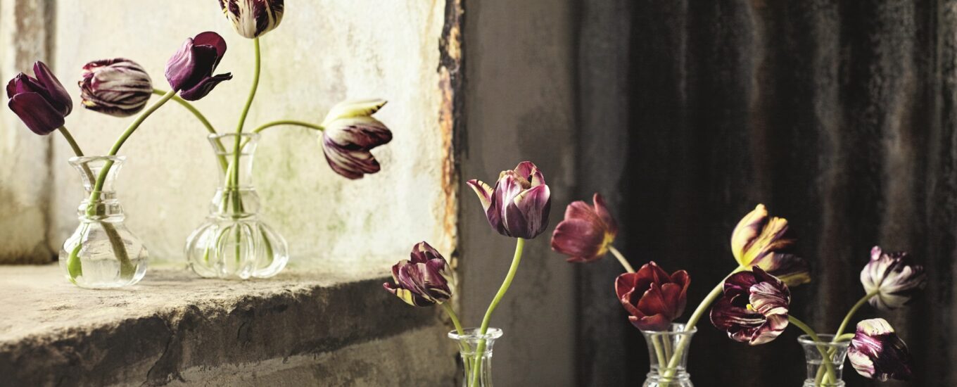 Considering my passion for tending tulips (and flowers in general), one would think that growing would be in my blood, but it most definitely is not. I grew up in the English countryside 8 km (5 miles) outside the city of Bath (about an hour’s drive from where I now live), and I don’t remember seeing a single tulip in our garden or house throughout my entire childhood. My parents loved trees and lawns, but they would not describe themselves as green-fingered and had limited success at growing plants, apart from a row of rather formal flowerpots containing bright red geraniums (actually Pelargonium), white Lobularia maritima (sweet alyssum) and blue Lobelia erinus (trailing lobelia) – all very patriotic. As a result, my sister and I spent our childhoods gathering bunches of wildflowers, such as Primula vulgaris (wild primrose) and Viola odorata (sweet violet), from the hedgerows, for the kitchen table. This quest for flowers has continued throughout my whole life. It ran as a thread through my university years, when I studied English literature with medieval art and architecture and would seek out flowers carved into the thirteenth-century misericords at Exeter Cathedral (I didn’t find a tulip there, nor in the margins of any medieval European manuscript); through my first career as a specialist in the book department at the auction house Sotheby’s, where I was drawn to gardening and cookery books; and later, when I retrained in horticulture at the English Gardening School, based at the Chelsea Physic Garden in London.