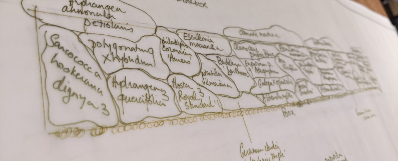 By Ceri Lumley, Project Archivist: Penelope Hobhouse Archive As many individuals did during the COVID lockdown of 2020 I turned to gardening and made my first (incredibly) amateurish forays into the world of garden design. I was hooked. As an archivist it felt like the perfect coming together of two worlds when I took on the project at the Garden Museum to catalogue the collections of some of the great names in garden design, writing and photography. The first of the collections I’ve been working on is that of Penelope Hobhouse, garden designer, consultant, historian, writer, lecturer and recipient of the RHS’ prestigious Victoria Medal of Honour; an honour shared with 63 individuals including Alan Titchmarsh, Jekka McVicar and Carol Klein, and in the past, Gertrude Jekyll, Christopher Lloyd and Beth Chatto. In 2020 the UK Society of Garden Designers gave Hobhouse a Lifetime Achievement Award for her outstanding contribution to the landscape and garden design profession. The collection itself originally spanned twenty-six ‘banker’s’ or records management storage boxes containing around 300 folders, five large A1 size boxes, a drawerful of A0 size drawings and a mysterious red tube which on inspection contained a 255cm long planting plan for Royaumont, an early commission for the Rothschild family. One of the first steps was to initially repackage the material, making cataloguing easier and preserving the documents for years to come. This also involved creating a box list from which the arrangement of the collection could be decided. It was clear from the outset that the consultancy and garden design work made up a considerable portion of the whole collection.