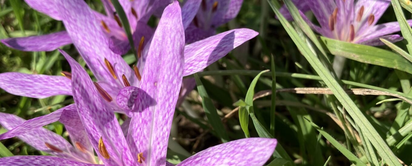The flowering of the colchicums occurs on the cusp of autumn, a little before leaves truly start to fall, in that delicious spell when the light begins to soften and nights quickly shorten. It didn’t take me many years of gardening to realise that these few weeks, following the cutting of meadows and the first frosts arriving, is the quietest time of the year for a gardener. The deadheading goes on and fruits are ripe to harvest, the garden ticks over, and there is little can be added now to better it for this year. And so, cometh the colchicums and with plenty enough time in which to admire them.
