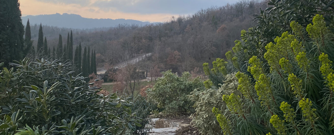 As her year as our Horticultural Trainee comes to a close, Caroline Cathcart shares her final garden placement, far away from our Lambeth patch in La Petraia, Tuscany: High up in the Tuscan hills in Chianti sits La Petraia, a secluded estate that looks out over a vast rural landscape. The surrounding vineyards roll into dense woodland, where the bare branches of the downy oak, blanched to a blue-green pallor with lichen, appear from a distance like the flowers of the smoke bush, Cotinus coggygria, amassing on the hillsides in glaucous swathes tinged with pink.