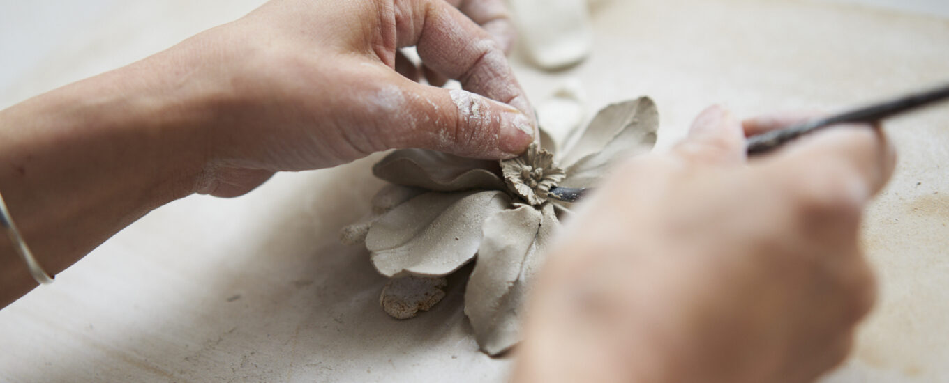 Ceramicist Kaori Tatebayashi was born in Arita, Japan, the home of traditional Imari porcelain. Now based in South London, Kaori creates delicately lifelike sculptures of plants and flowers, often based on those grown in her garden. We chatted with Kaori to find out more about her work, and the ceramic bramble she created for our Constance Spry exhibition, branching across a wall out of a Constance Spry Fulham Pottery vase:
