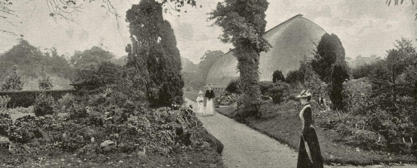 Glass lantern slide of the conservatory at RHS Kensington Gardens (1875-1880). Kensington Gardens Photographic Collection. Credit: RHS Lindley Collections