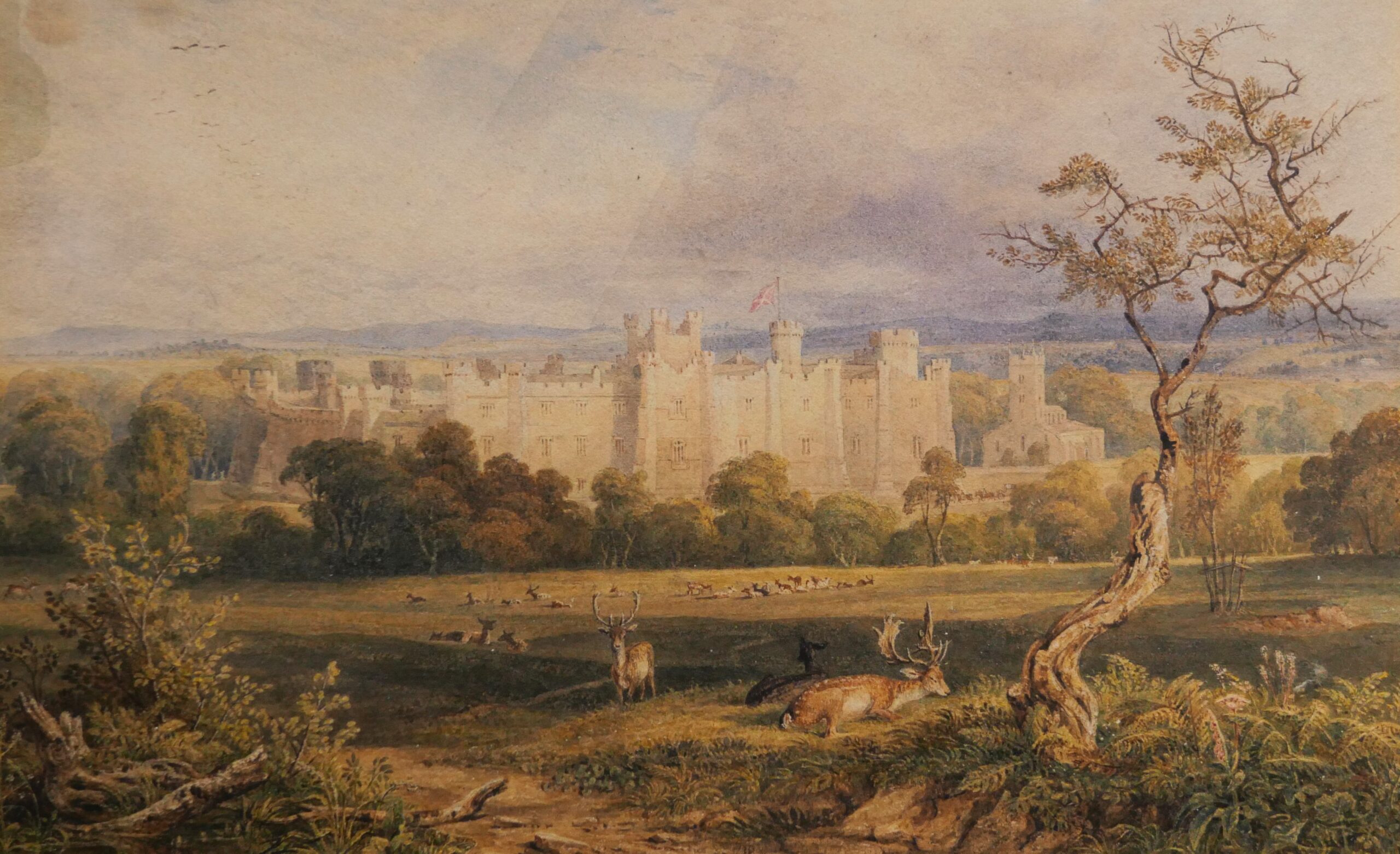 Nesfield’s designs for Castle Howard in Yorkshire are featured extensively in the collection. Here, he laid out the gardens in 1853 with the Atlas Fountain as a centrepiece, originally surrounded by an intricate parterre with a geometrical design made out of low box hedging, coloured gravels, and herbaceous plants. The parterre was removed in the 1890s but the fountain remains in place. The collection predominantly comprises the archives of the family business in garden and landscape design, and also includes a large quantity of material from William Andrews Nesfield’s earlier career as a watercolourist, telling the story of how his work as a painter of landscapes and waterfalls inspired his career. The material covers a considerable time period, with most material dating between 1820-1870, demonstrating both the development of the Nesfields’ specific aesthetic, and the wider changing trends in landscape design. William Andrews Nesfield’s paintings demonstrate how his career and interests progressed, and how his early career as a watercolourist influenced his later business. The influence of His earlier career spent capturing perfect landscapes in watercolour directly influenced his later work rearranging landscapes for clients. This can be seen in some of his sketches, with trees and features added or removed to create a perfect scene.