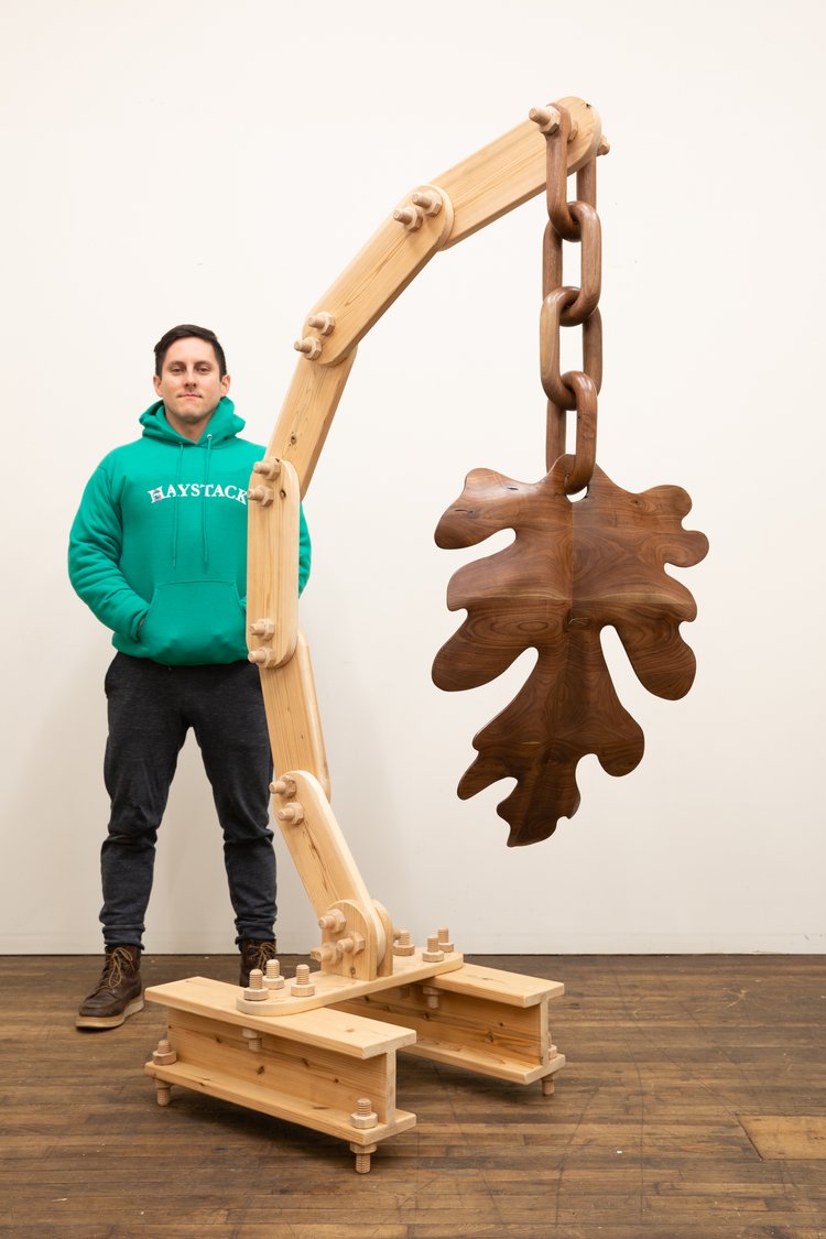 I am a sculptor based in New York City. My work explores the emotive and storytelling qualities of materials. I give feelings a shape. Working with humour, magical realism, and the uncanny, I create sculptures that often reflect on my experience as an immigrant and queer person. Wood is my primary medium, and I strive to honour generational knowledge. Both of my parents taught me how to approach material dexterity from a very young age. They taught me to see the space between things, how things connect to each other, and how to tend to things. They made caring for the built world part of my upbringing. I now try to work from a place of respect and love for the built world.