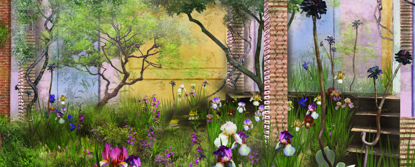 The Nurture Landscapes Garden takes as its inspiration the work of Cedric Morris and his garden at Benton End, including his personal plant selections. The garden will be multi-layered, combining textures reminiscent of the house at Benton End with a wild planting palette and more carefully gardened moments that incorporate the Benton Iris, Elaeagnus Quicksilver and other Morris cultivars. Boundary walls of richly coloured canvas and textured, straw-cob walls will set the tone and atmosphere, providing a backdrop to ‘wild’ looking, semi-abandoned plantings. In contrast there will be carefully composed moments with the hand of the gardener very much evident, for example succulents growing in raised planters and potted plants set on a generous, worn table, a focussed place for gathering. Inspired by the witness pine trees at Benton, the solid, dark accents of two tall pines will tower above intricate compositions of plants and brick patterned paths. The garden’s ambition is to be as sustainable as possible – sourcing locally and using reclaimed materials wherever possible.