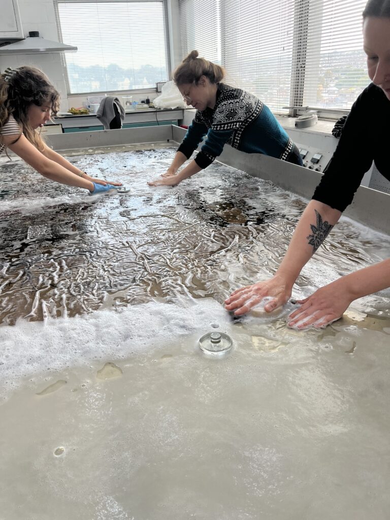 A few weeks ago, I travelled to Brighton to see the first stage of the conservation work, the tapestry being washed.