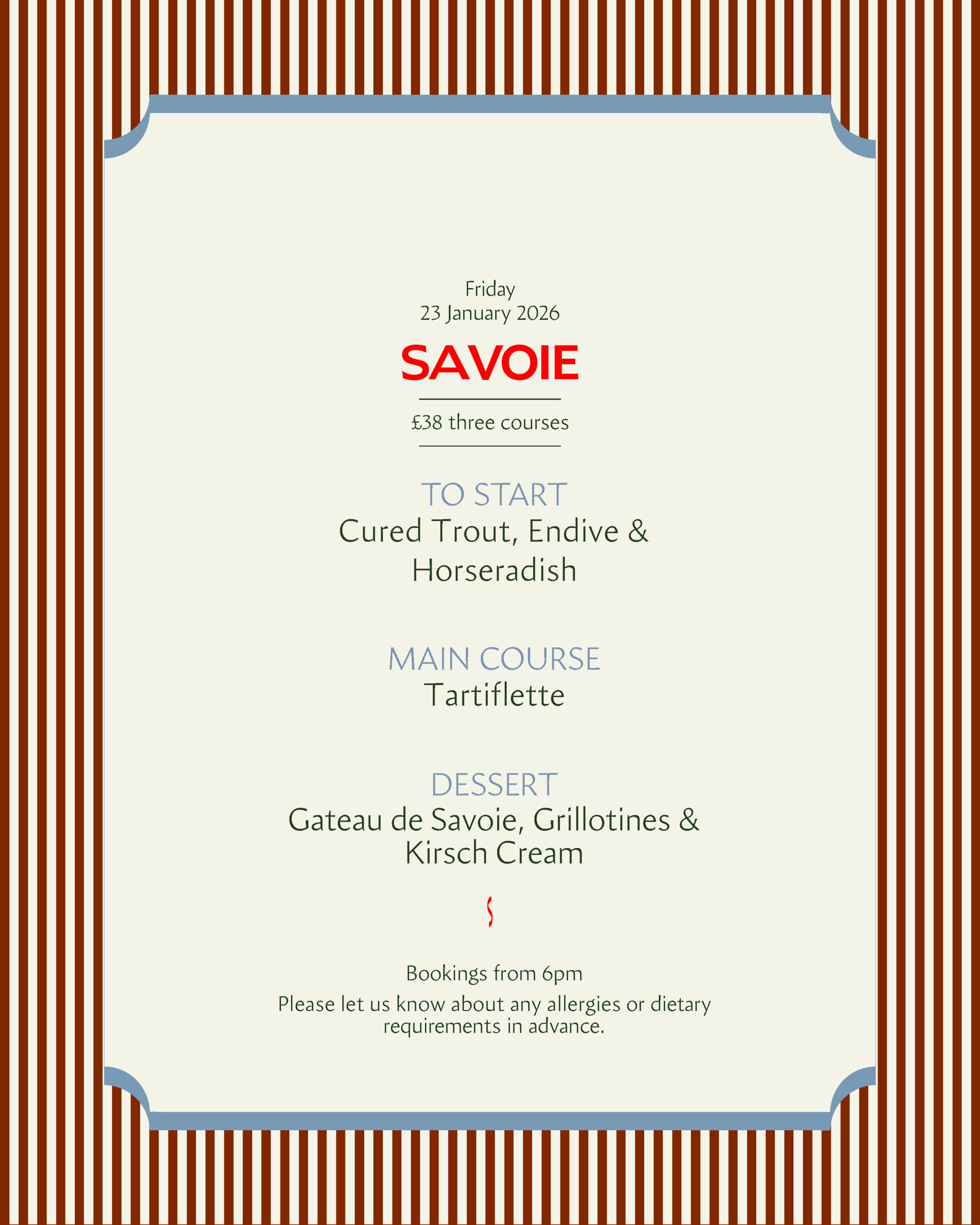£38 three courses