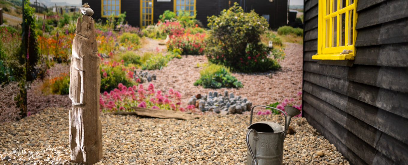 Jarman acquired Prospect Cottage, a fisherman’s shack on the Dungeness shingle, for £32,000 after spotting it for sale while filming on the beach with Tilda Swinton. Diagnosed with HIV on 22 December 1986, he resolved to “get as much out of life as possible” and began creating a garden. The only contemporary garden made without a boundary, it stood beside a nuclear power station; shingle, wind and salt created an extreme version of “right plant for the right place.” It evoked resilience and the uplifting sense that if a garden could be made there—on a stony beach overshadowed by a power station—it could be made on any site, however small and vulnerable.
