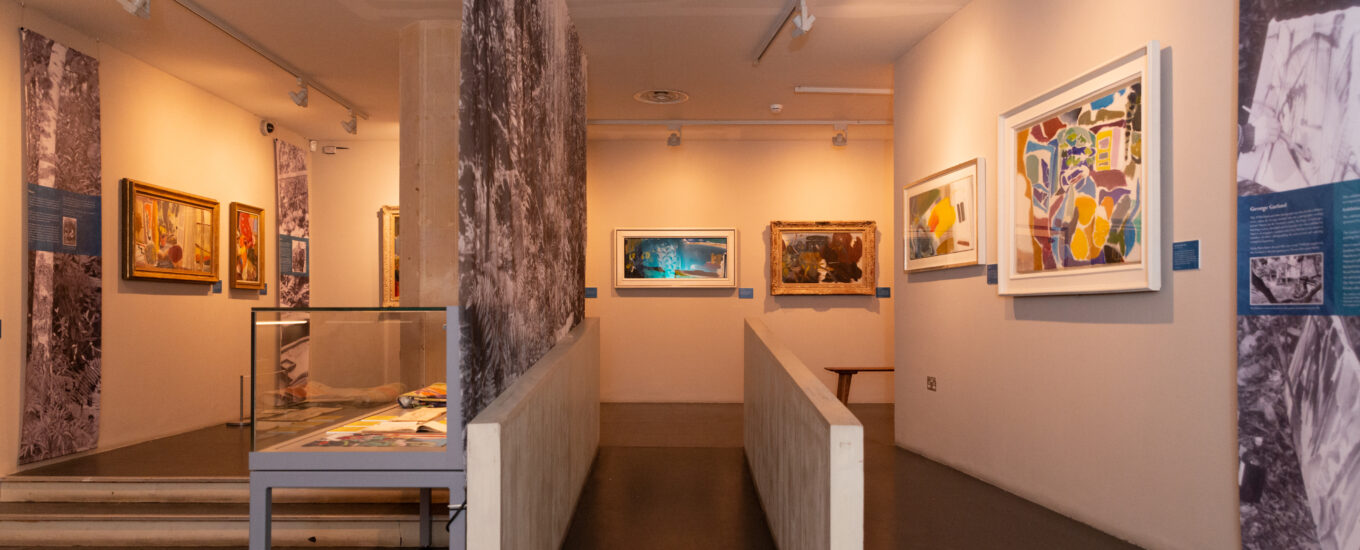 This exhibition included his Eye Music compositions, a term he coined for narrow, rectangular canvases with unfolding narratives as the eye “listens” to the painting. Hitchens himself noted in 1940, “I seek to recreate the truth of nature by making my own song about it (in paint).” The Eye Music series features meadows, flowers and woodlands depicted in lively fields of colour.